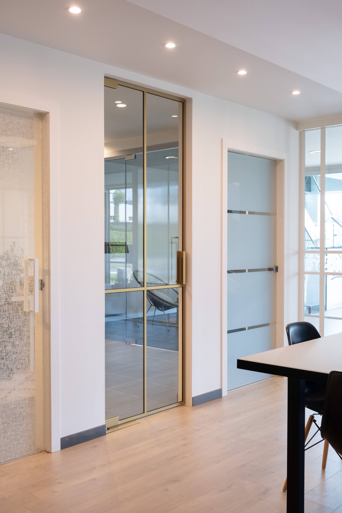 De eerste werknemer volgt niet veel later: Kurt. Die is vandaag niet alleen medezaakvoerder van Interieurglas, maar ook de schoonzoon van Jeff. Wanneer het duidelijk is dat vol-glazen deuren hun plaatst op de markt veroveren, besluiten Jeff en Kurt om het atelier te verhuizen naar het huidige pand aan de Rijksweg in Ruisbroek. Daar kunnen ze met veel grotere panelen werken.